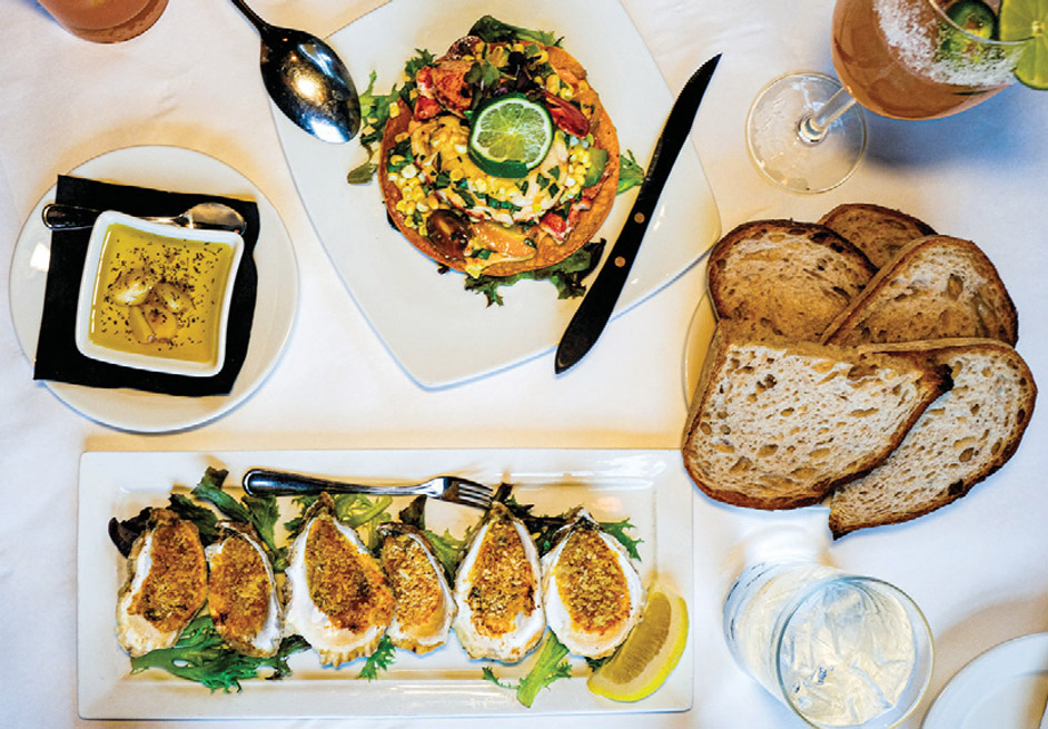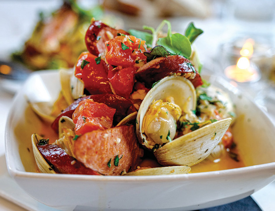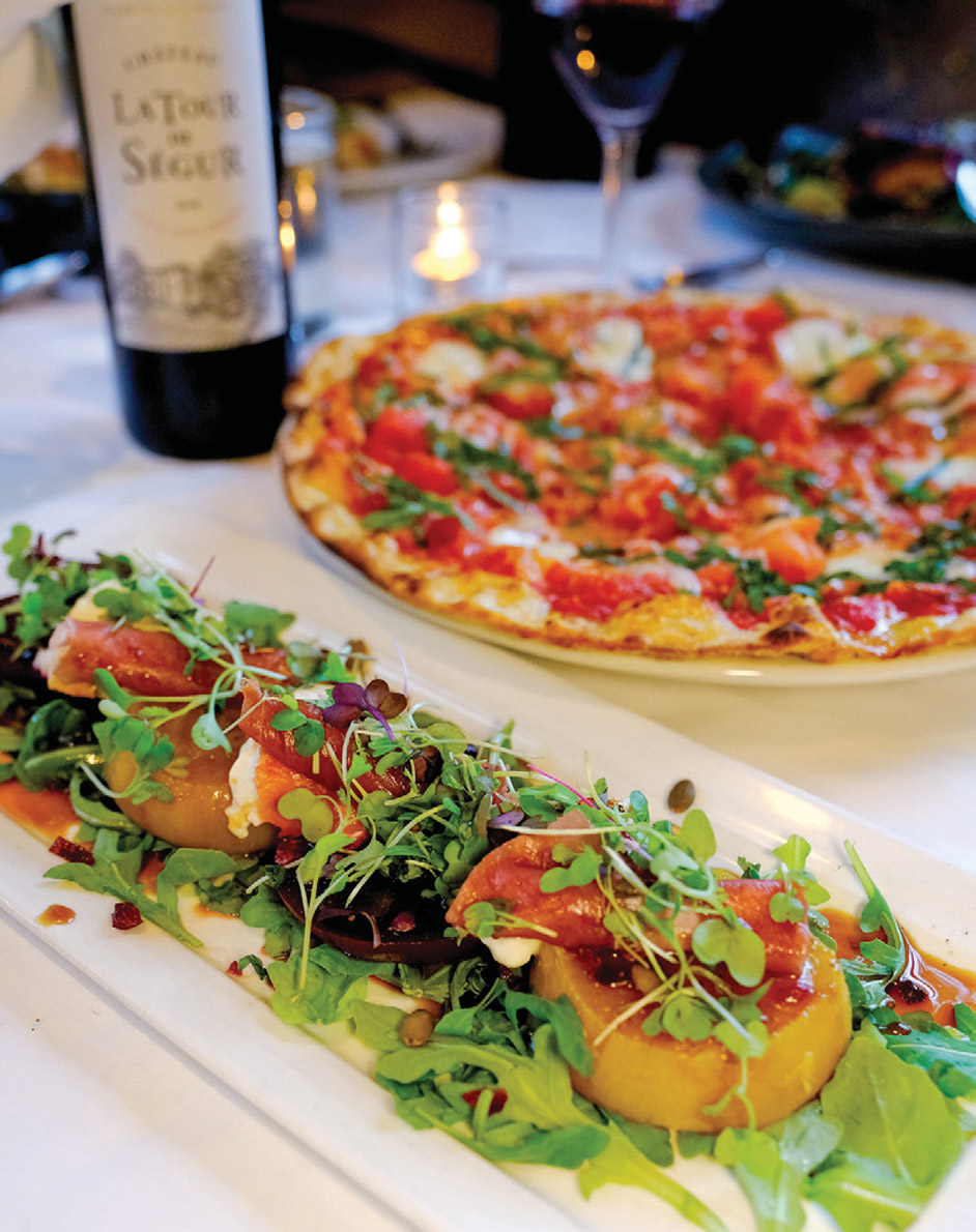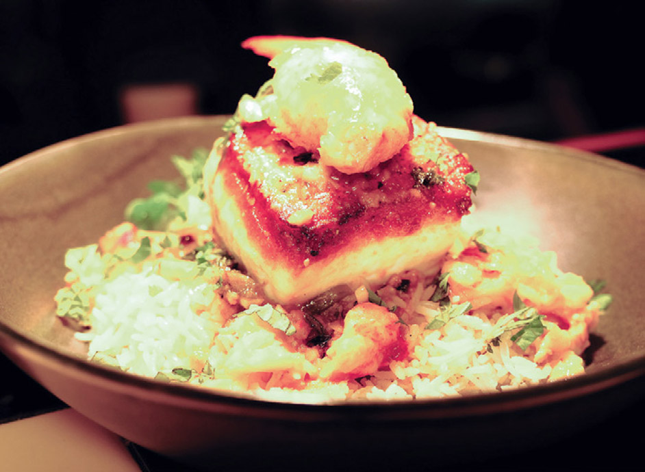 The grilled center-cut chop delivers a smoked whiskey sugarrubbed fourteen-ounce behemoth of tender pork perfection. The chop, partnered with creamy celeriac purée, sautéed greens, dried cranberries and an apple-cider demi-glace, imparts fall flavors in each forkful. Pollio explains. “Often the protein will stay the same but we will try to incorporate changes in the set up (restaurant speak for sides and garnishes) depending on what is seasonal and what we have to work with. Sometimes the best specials come out of a ‘mistake’ delivery when we receive something we did not even order.”
